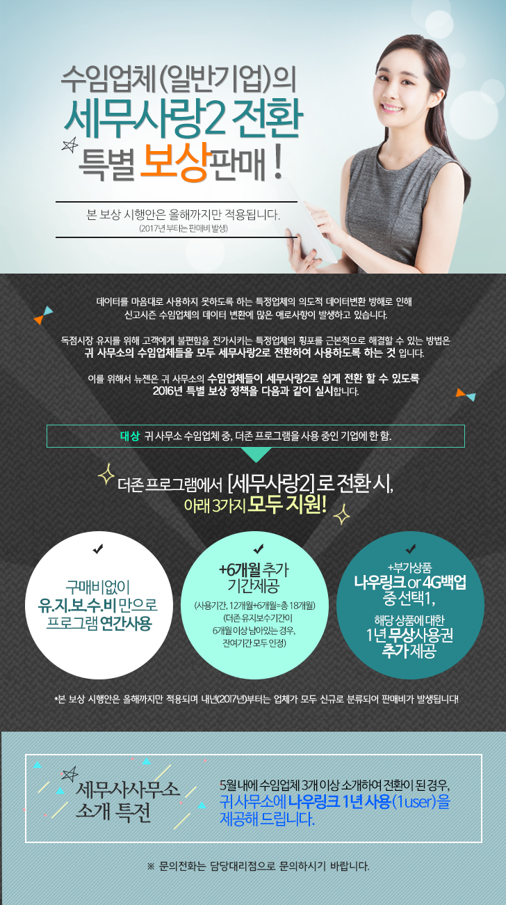 수임업체(일반기업)의 세무사랑2 전환 특별 보상판매!