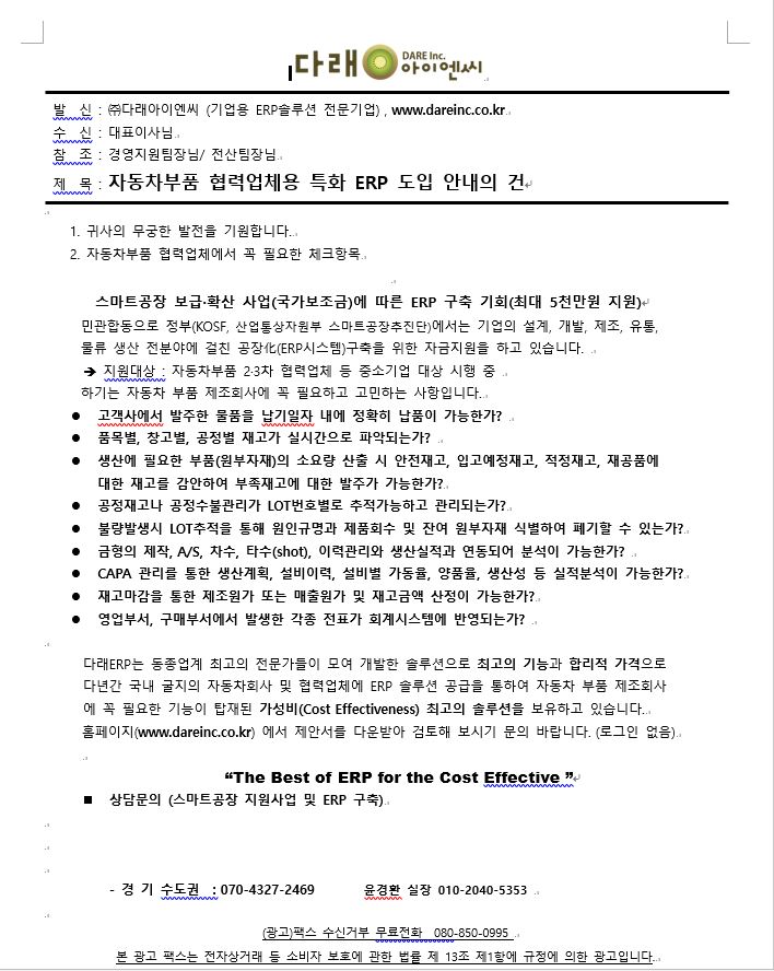 다래ERP 스마트공장 지원사업