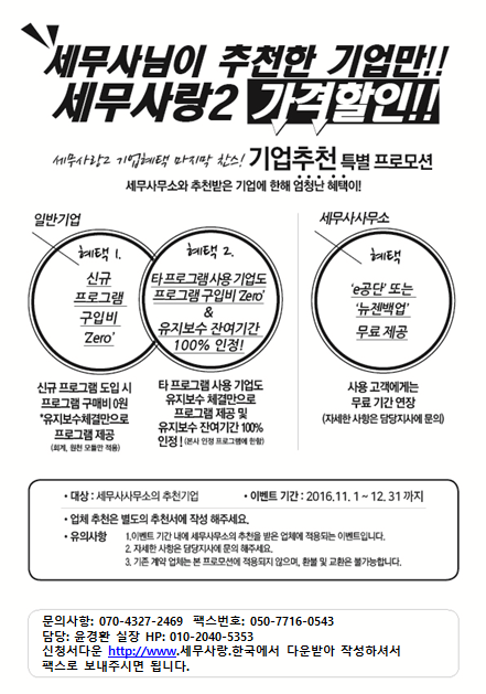 세무사님이 추천한 기업만!! 세무사랑2 가격할인